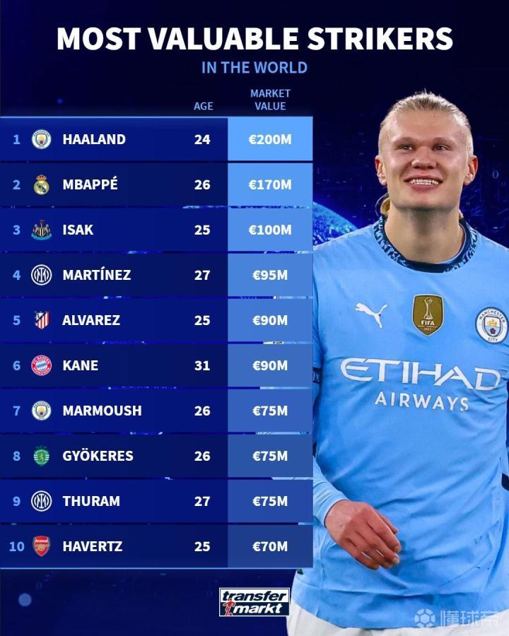 最近,德国转会市场网站更新了世界足坛中锋的身价榜单,让球迷们对各家俱乐部的豪门球员们有了更直观的了解。在这份榜单中,挪威国脚哈兰德以2亿欧元的身价居首,让人不禁感叹他的巨大潜力和市场价值。而排名第二则是法国天才姆巴佩,他的身价高达1.7亿欧元,也是世界级巨星之一。
